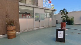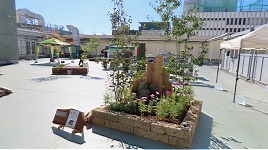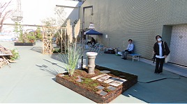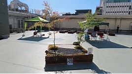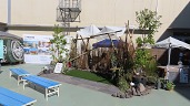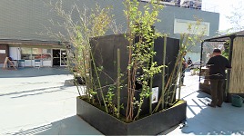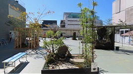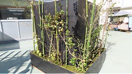 ![]() | 会場は栄のど真ん中。三越店内から屋上広場へ出ますと、坪庭が点々と設置されています。 |