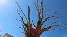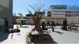![]() こちらも名古屋市 ドンゴロスの「世界樹(ユグドラシル)」という作品。 ご存じユグドラシルは、北欧神話に出てくる世界を体現するほどの巨木。 | ![]() なるほど、世界樹に相応しく、荒々しい流木を組み合わせて天空に向かってそびえ立つ様を表現。 |